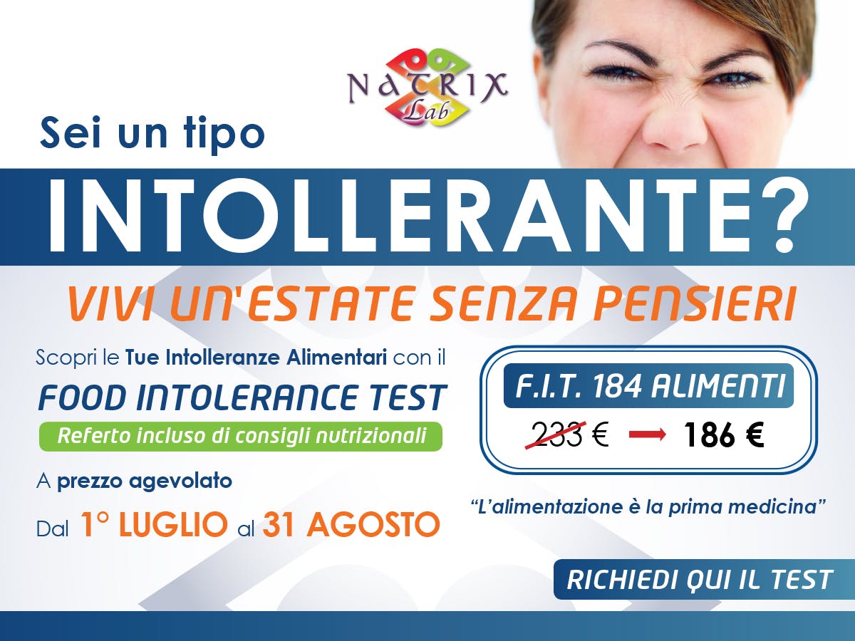 PROMO ESTATE 2025! Con il Food Intolerance Test 184 alimenti di NatrixLab, scopri gli alimenti che causano gonfiore, mal di testa, stanchezza e altri disturbi. Ricevi un referto dettagliato e consigli nutrizionali personalizzati. OFFERTA SPECIALE: